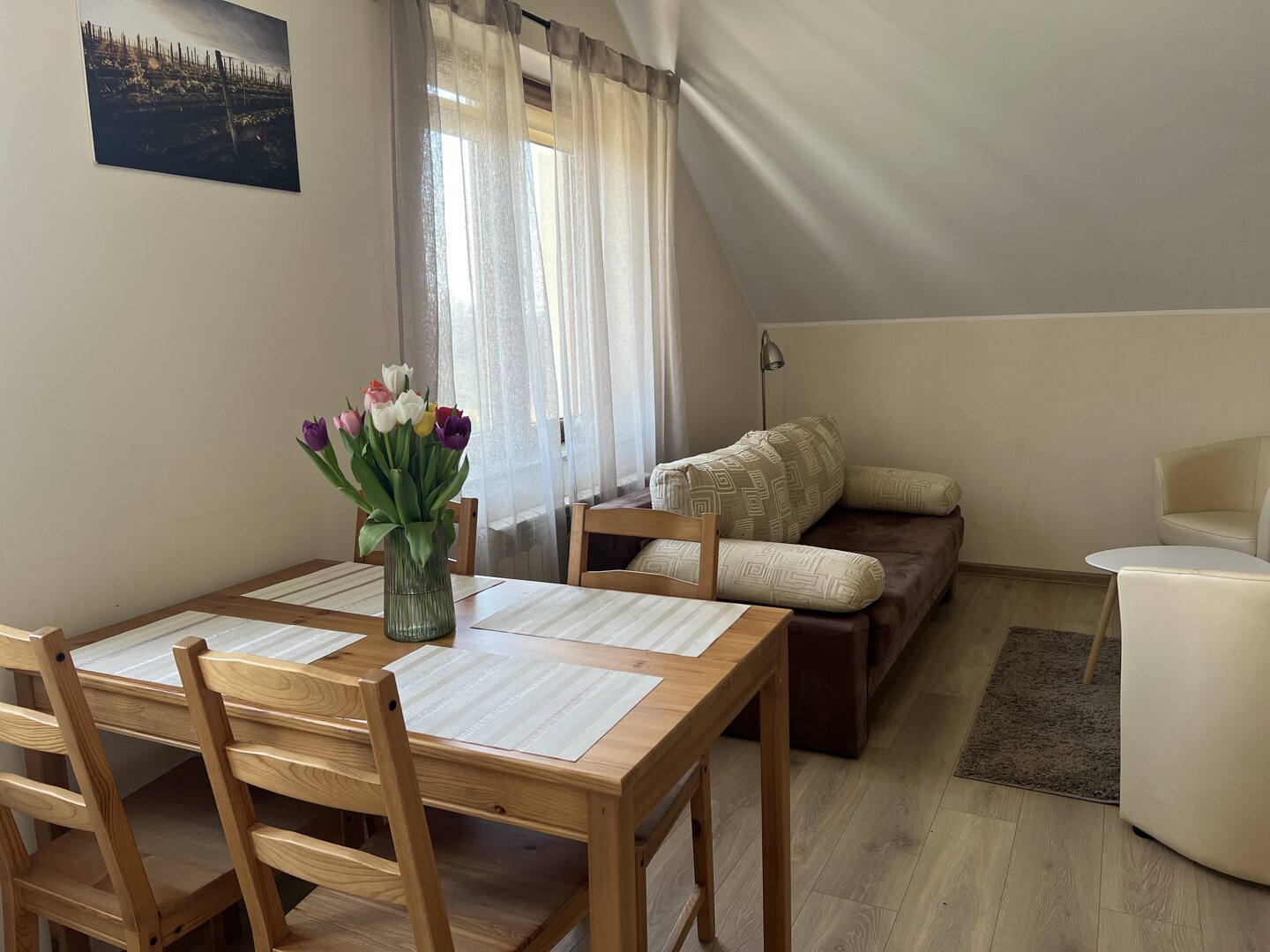 W Winnicy Płochockich oferujemy możliwość noclegu w sezonie od maja do sierpnia. Posiadamy cztery przestronne pokoje dwuosobowe z oddzielnymi łazienkami. Wejścia do pokoi znajdują się na szerokim tarasie, z którego codziennie można podziwiać wschody i zac