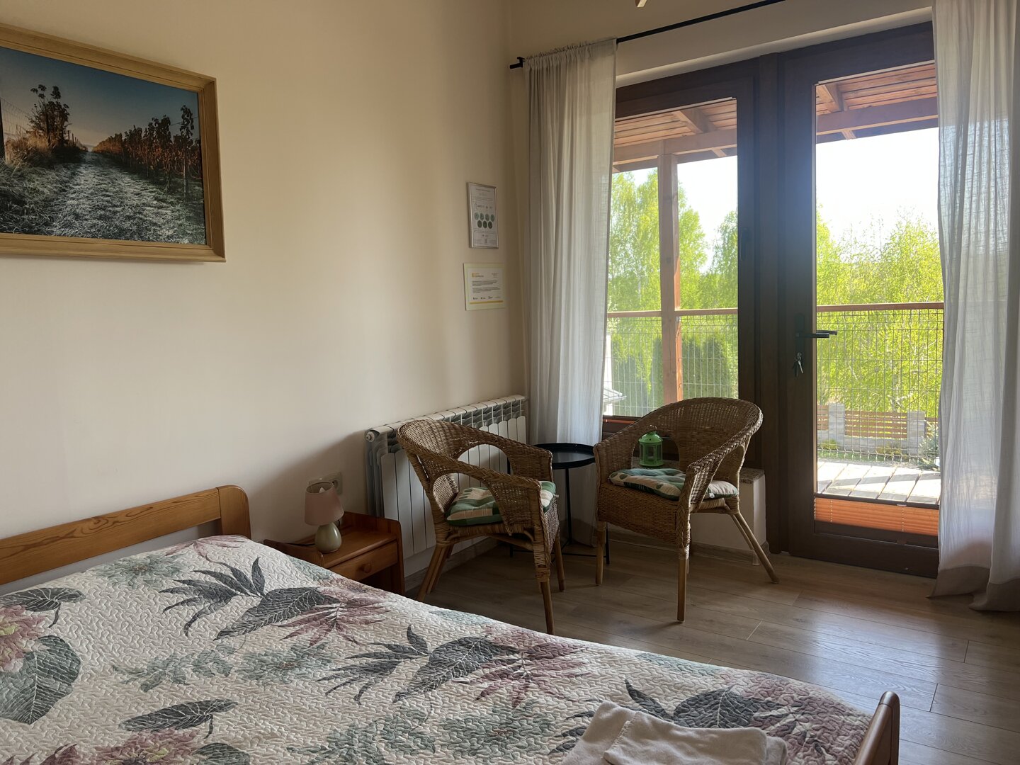 W Winnicy Płochockich oferujemy możliwość noclegu w sezonie od maja do sierpnia. Posiadamy cztery przestronne pokoje dwuosobowe z oddzielnymi łazienkami. Wejścia do pokoi znajdują się na szerokim tarasie, z którego codziennie można podziwiać wschody i zac